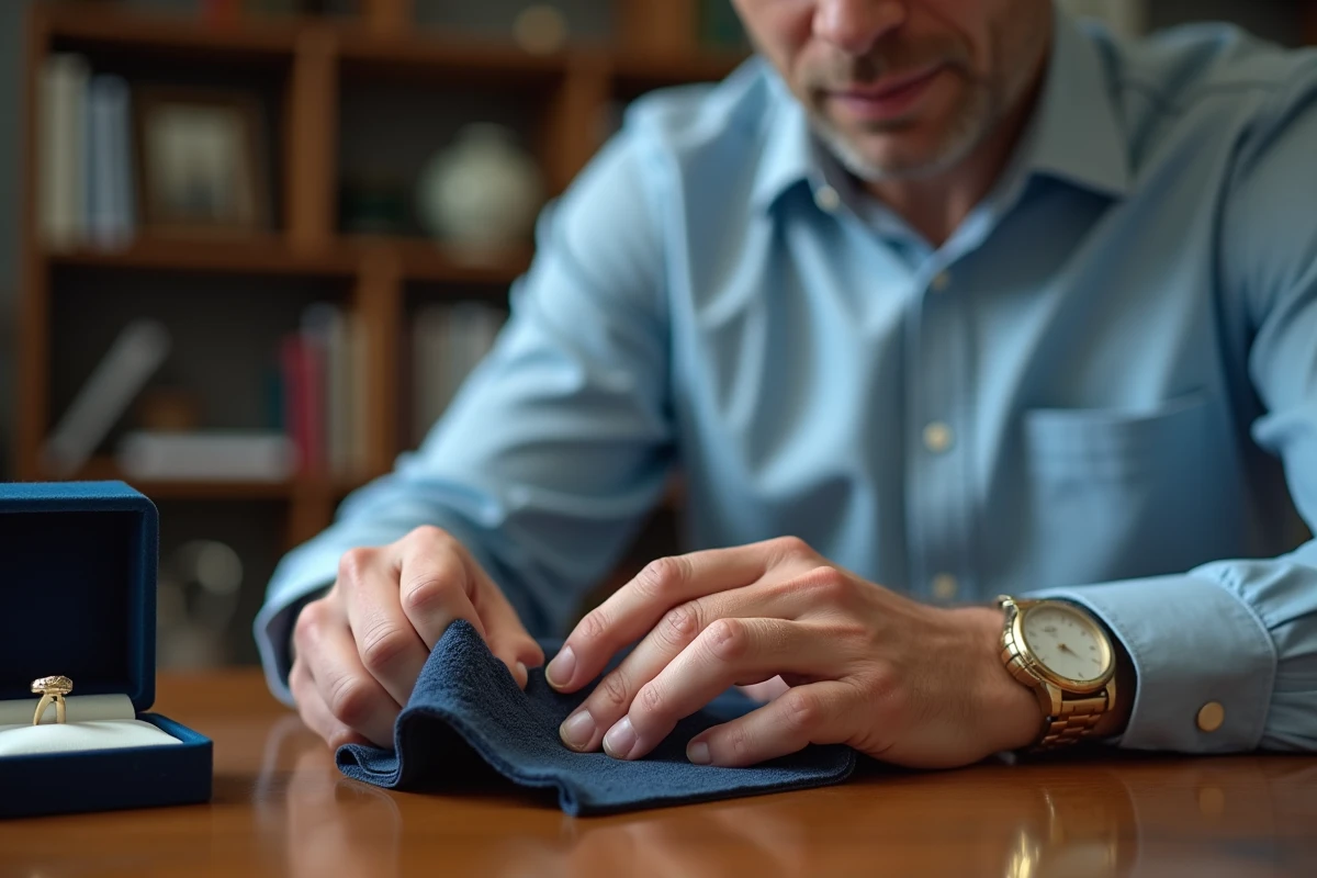 Entretenir l’or blanc, ce n’est pas un simple geste : c’est une discipline. Cet alliage raffiné, recouvert d’une pellicule de rhodium, exige de la régularité et quelques précautions. Pour votre chevalière homme en or blanc, la méthode la plus simple reste la plus fiable : un nettoyage doux dans un bol d’eau tiède avec un peu de savon doux. Oubliez les poudres miracles, préférez le liquide vaisselle. Munissez-vous d’une brosse à dents souple, frottez délicatement, rincez longuement à l’eau claire. Pour sécher, utilisez un chiffon doux ou une peau de chamois, surtout pas de papier abrasif, l’or blanc y laisse des marques.